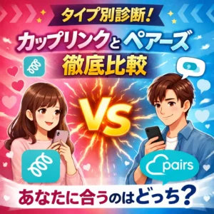 マッチングアプリって種類が多すぎて、どれを選べばいいか本当に悩みますよね。この記事では、カップリンク・with・Omiaiの3アプリを、目的・料金・ユーザー層・機能の4つの角度からわかりやすく比べます。最後には「あなたにはどれが向いているか」を診断できるチェックリストも用意しました。